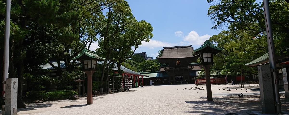 暑い中にもすがすがしい感じのする箱崎宮です。